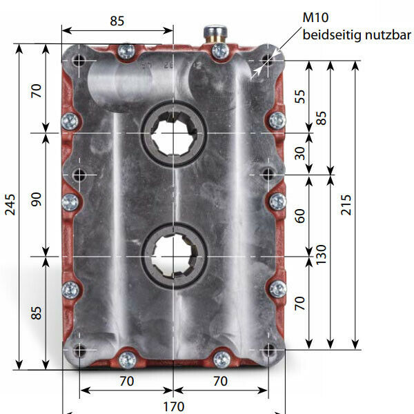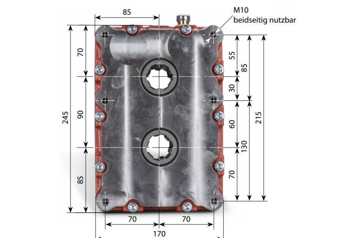 Diese Umkehrgetriebe sind in 3 verschiedenen Übersetzungen erhältlich, nämlich 1:1, 1:1,4 und 1:2. Das Gewicht beträgt ca. 18 kg.