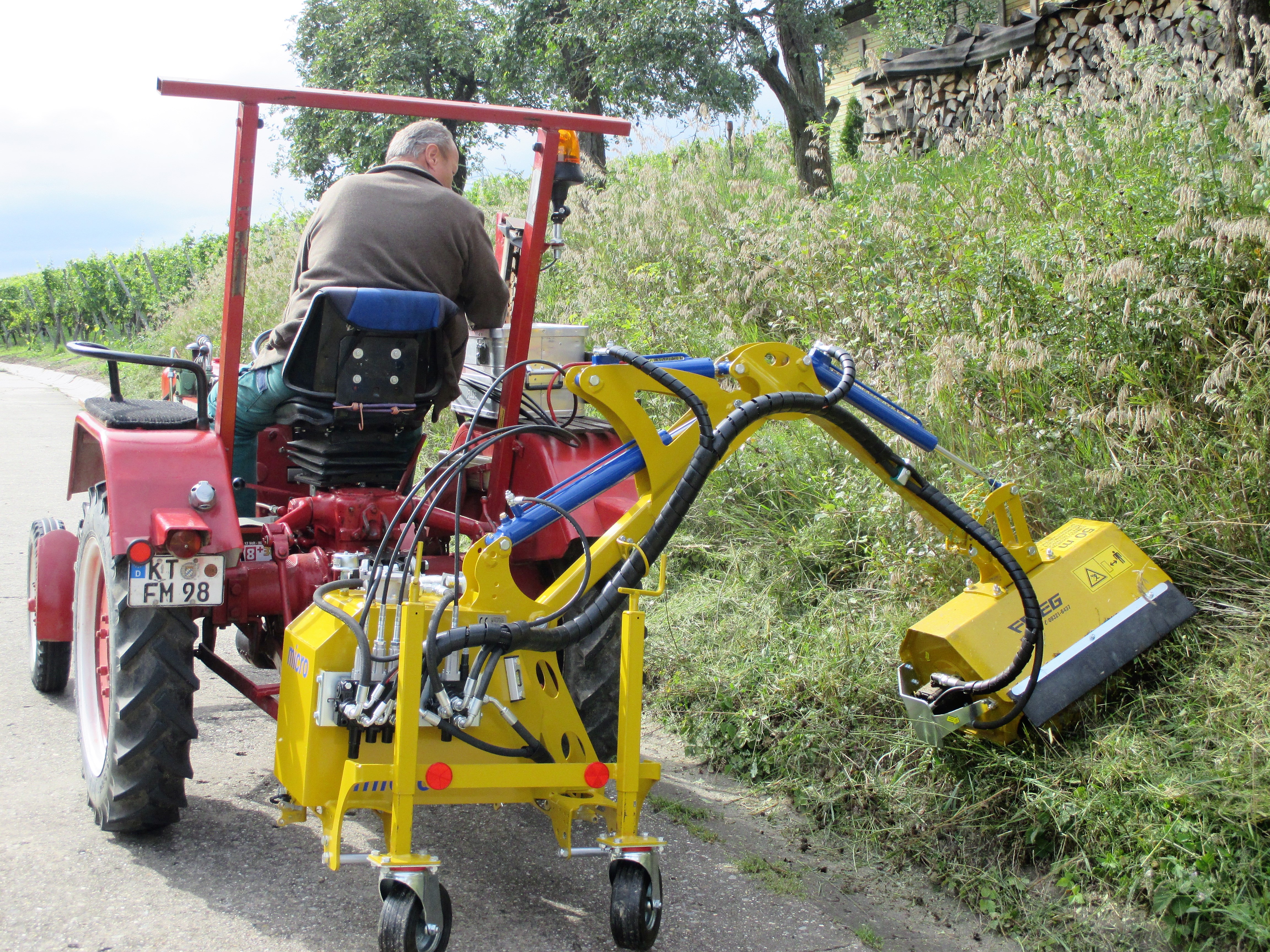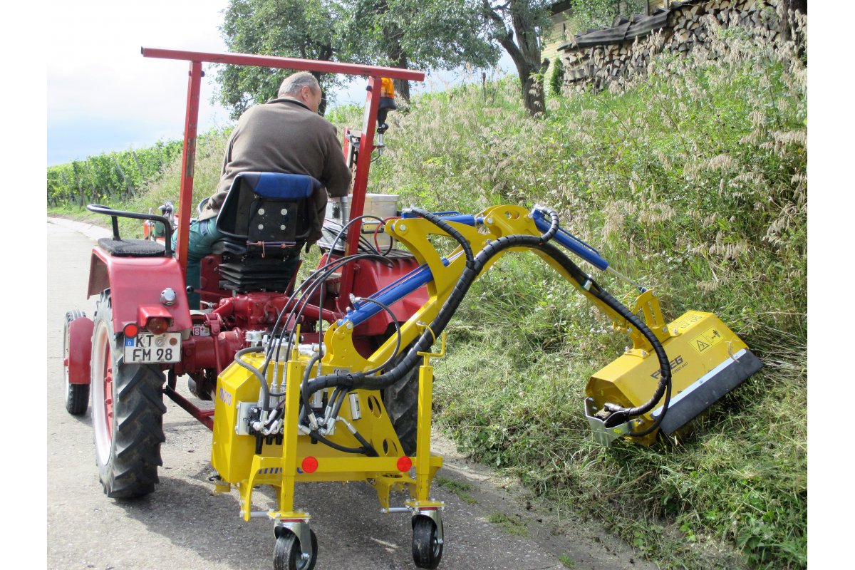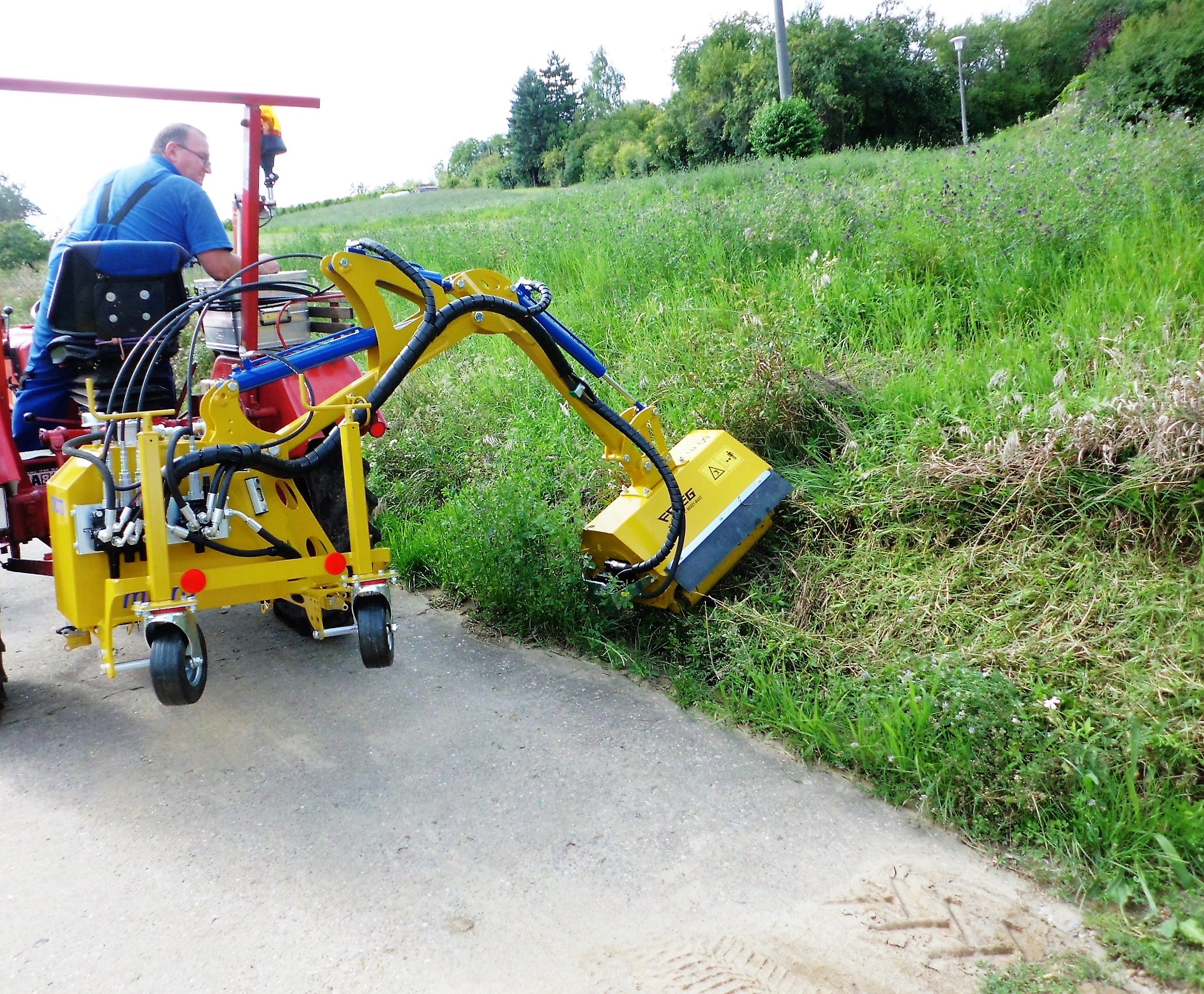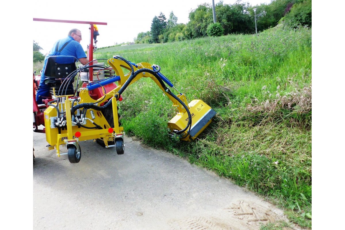 Dieser Böschungsmulcher wird im Kundenauftrag verkauft und war nur wenige Stunden im Einsatz. Der Mulcher eignet sich hervorragend zum mülchen von Gras und Büschen am Hang oder im Graben.