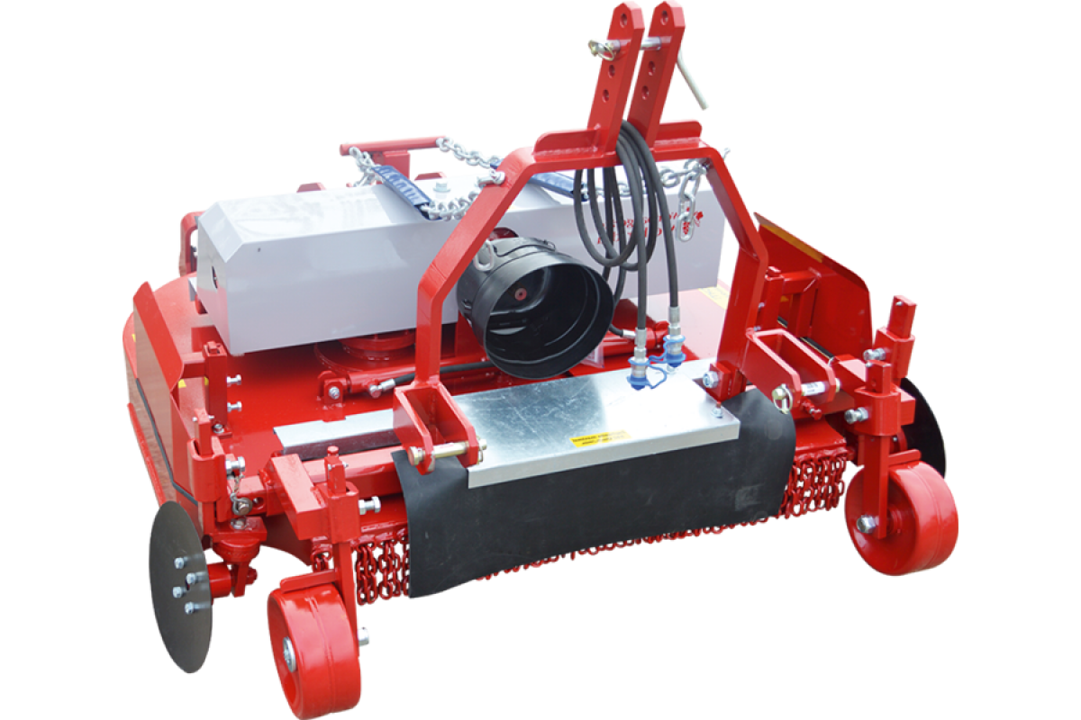 - Das Mulchgerät kann in der Grundbreite verändert werden, ohne das sich das Gras an kritischen Stellen aufbauen kann, dadurch ist gewährleistet, dass das Gerät jederzeit auf die minimale Breite zusammenfahrbar ist.