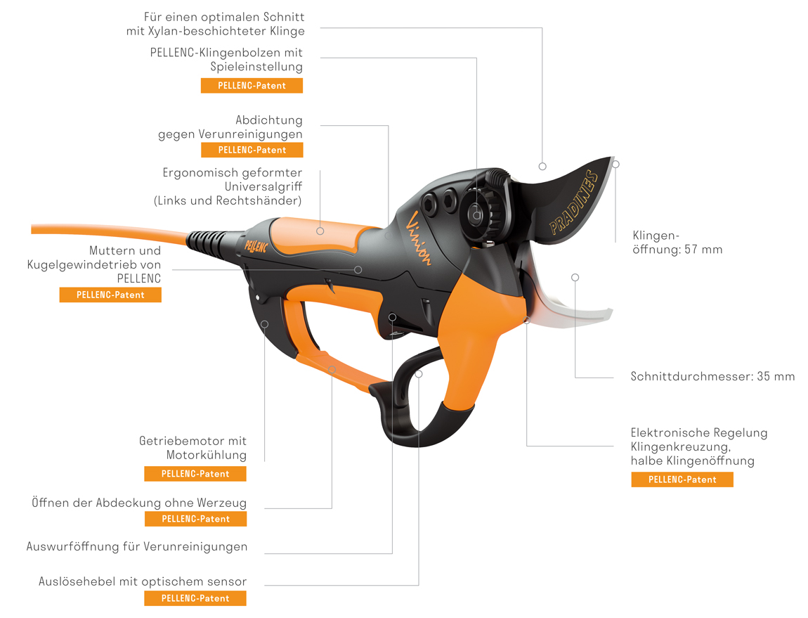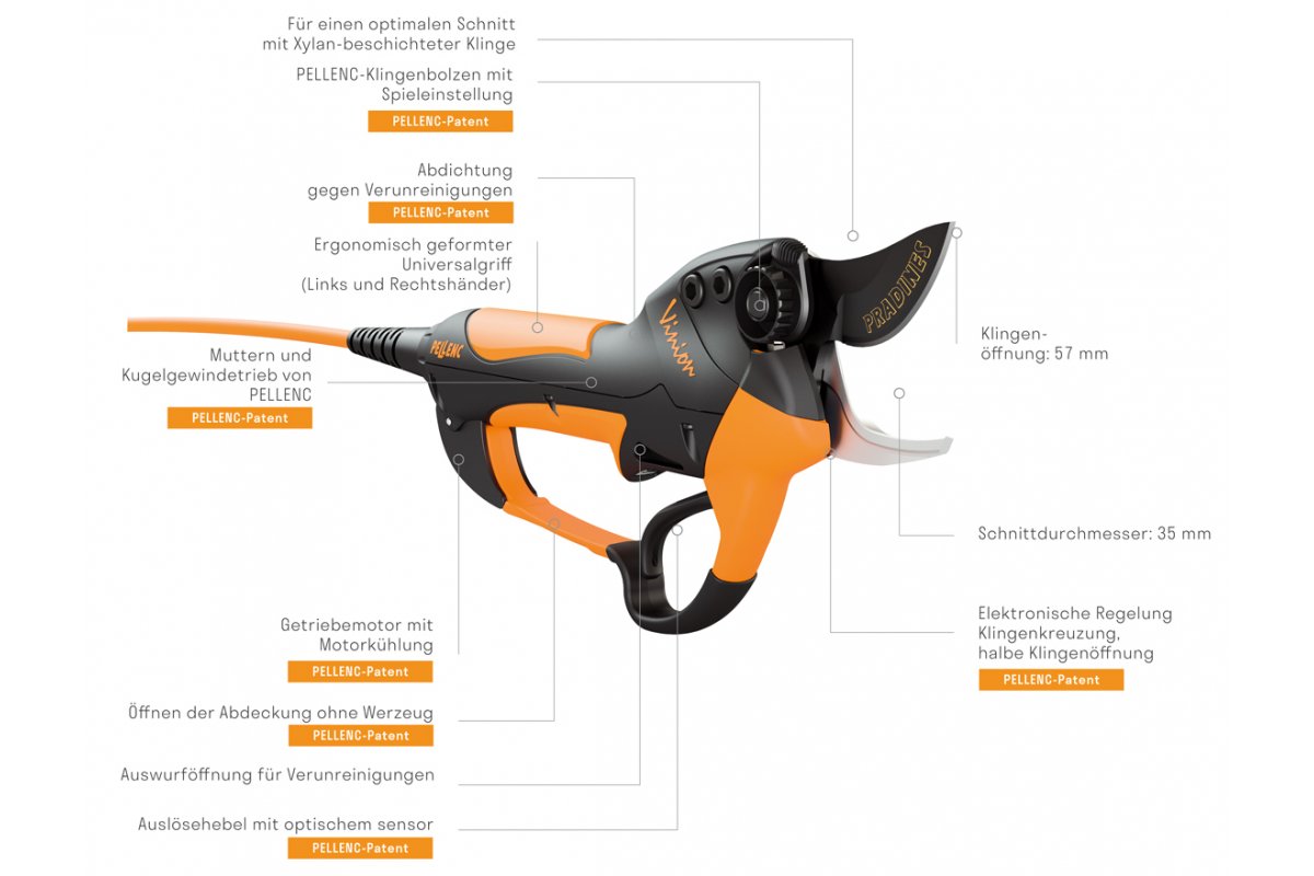 Kompakte Rebschere mit optimaler Handhabung, geeignet für alle Handgrößen