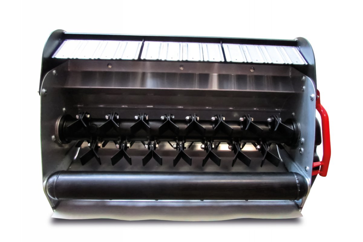 Der Schlegelmulcher ist mit einem Getriebe mit Zahnrädern im Ölbad und einem soliden Stahlrahmen ausgestattet. Die einzelneRotorwelle ist in Kugellagern, die für schwerste Beanspruchungen ausgelegt sind, gelagert.