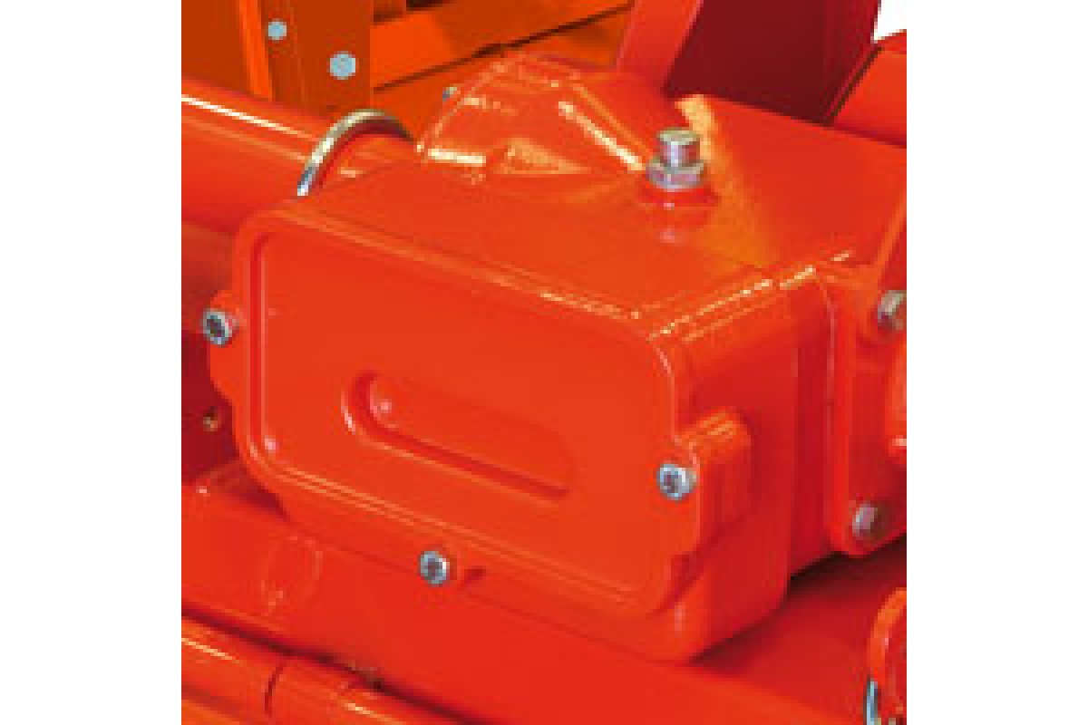 Zahnradantrieb seitlich im Ölbad und Bullauge für Ölkontrolle