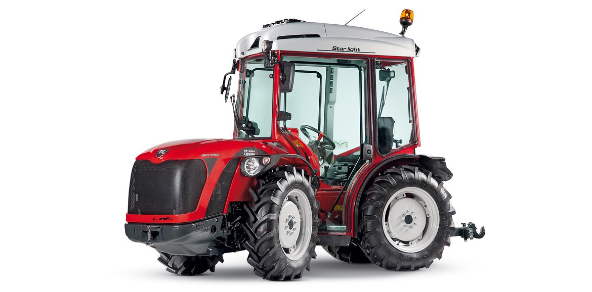 Der SRH 9800 Infinity (87 PS) ist ein Traktor in einer kompakten Bauform mit Gelenkrahmen, umkehrbarem Fahrerstand, mit Getriebe mit konstanter Leistung, ohne Leistungsunterbrechung auch bei der Aufnahme von aussetzenden Lasten.